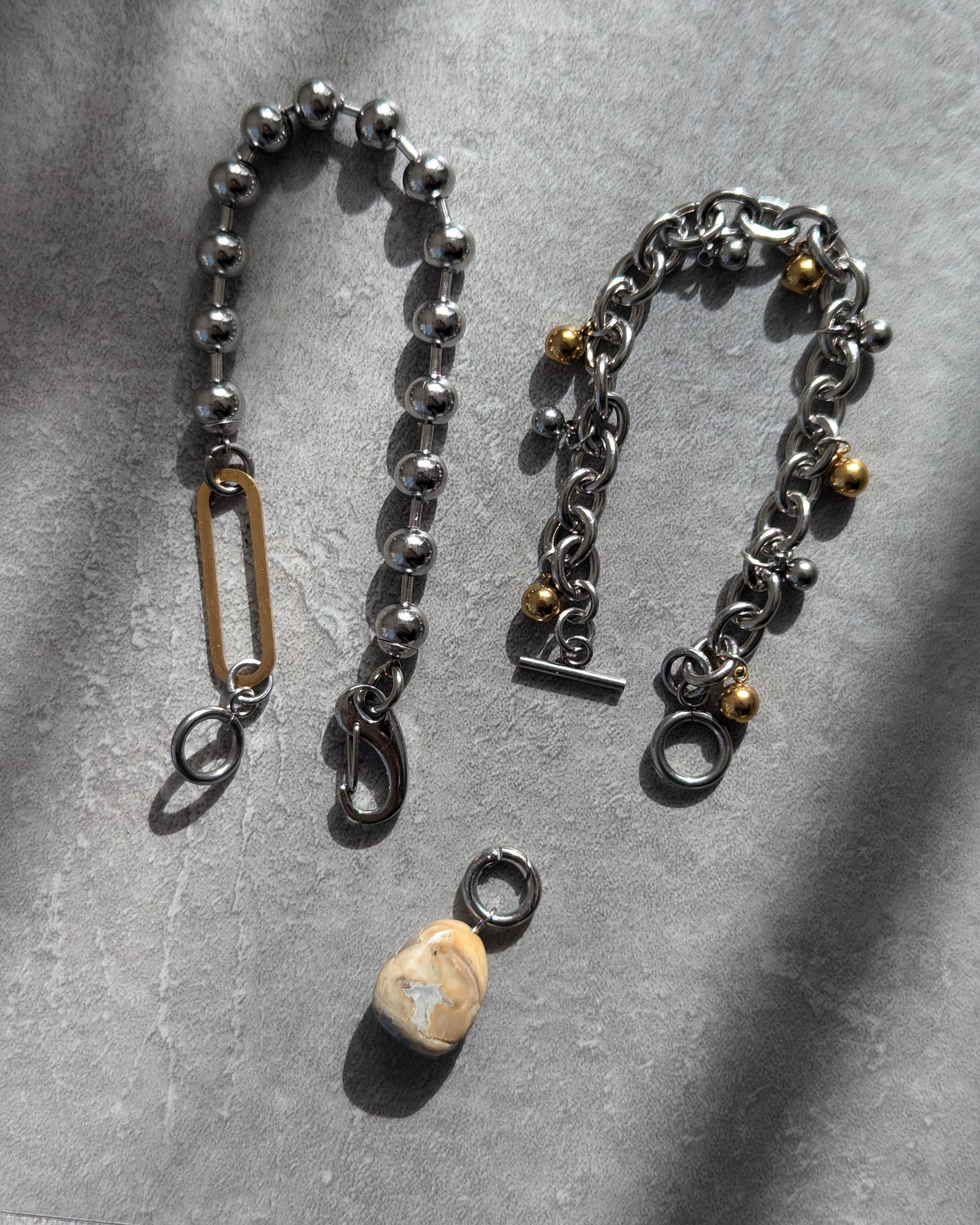 2種類のチェーンはそれぞれブレスレットとキーチェーンやバッグチャームに使用できます